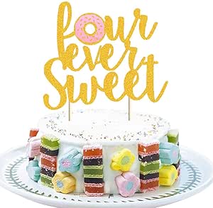Amazon Com Donut 4th Birthday Cake Topper Gold Glitter Donut Fourever Sweet Cake Decor Donut Grow Up Too Sweet Forever Sweet Doughnut Themed Kids Boy Girl 4th Birthday Cake Supplies Decorations Grocery Gourmet Food